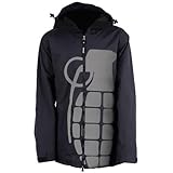Grenade Exploiter Black XL, Grenade Exploiter 2012 Snowboard Jacket : Show no mercy on the slopes with the Grenade Exploit 2012 Black 8K snowboard jacket. The Exploit jacket features a custom colorful Grenade full print front graphic, an 8,000MM waterproofing and 5,000GM breathability rating, custom Grenade cinch pulls below the hood for extra protection against the elements, an interior powder gator to keep the snow out, zipped mesh air vents on the arms, a big stash pocket and custom ID pocket. Fly high in extra stye with the Grenade Exploit 2012 jacket! ...