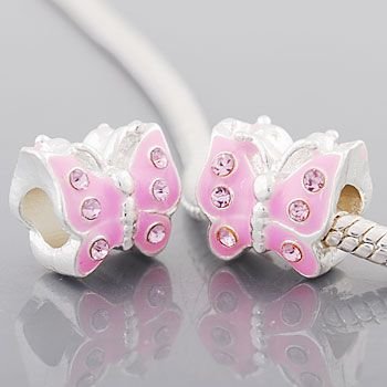 Here are some of the great features of Beautiful Antique Silver Pink Enamel Butterfly Spacer Charm Bead With Rhinestones. Compatible With Pandora, Biagi, Troll, Chamilla and Many Other Bracelets.
