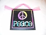 The Little Store Of Home Decor , We've sealed this very fun and adorable Peace print onto wood giving it a framed appearance. The background color is black and it measures approximately 7" squared by 1/4" thick (wood dimensions not including hanger). We've added a hot pink ribbon for easy hanging and added charm ...