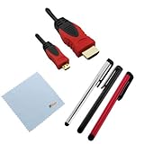 Here are some of the great features of GTMax 10FT Micro HDMI Cable (Red/Black) + 3x Stylus (Silver / Black /Red) for Motorola Droid Bionic Targa XT875, Photon 4G, Xoom , Xoom Family Edition, DROID XYBOARD 8.2, DROID XYBOARD 10.1; Samsung Droid Charge SCH i510/i520 ; Asus Transformer Prime(Package include a Microfiber Cleaning Cloth)