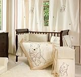 Winnie the Pooh A Bear named Pooh, A Bear named Pooh Collection 4 pc Crib Bedding set has all that your little bundle of joy will need. Let the little one in your home settle down to sleep in this incredible nursery set. This baby Girl and Boy Cuddly Pooh power bedding set combines embroidered appliqu?s of Pooh with a modern color combination for a stylish whimsical look. This collection uses the stylish colors of Cream . The design uses 100% cotton fabrics that are machine washable for easy care. This wonderful set will fit all cribs and toddler beds. Your Crib Set Includes: Crib Comforter (Qulit) - 90 x 114cm With 250gsm Polyester Fiber. Crib Bumper - 28 x 210cm With 250gsm Polyester Fiber. Fitted Sheet - 70 x 128 + 16cm Crib Skirt (Dust Ruffle) - 70 x 124 + 32cm (Read More)